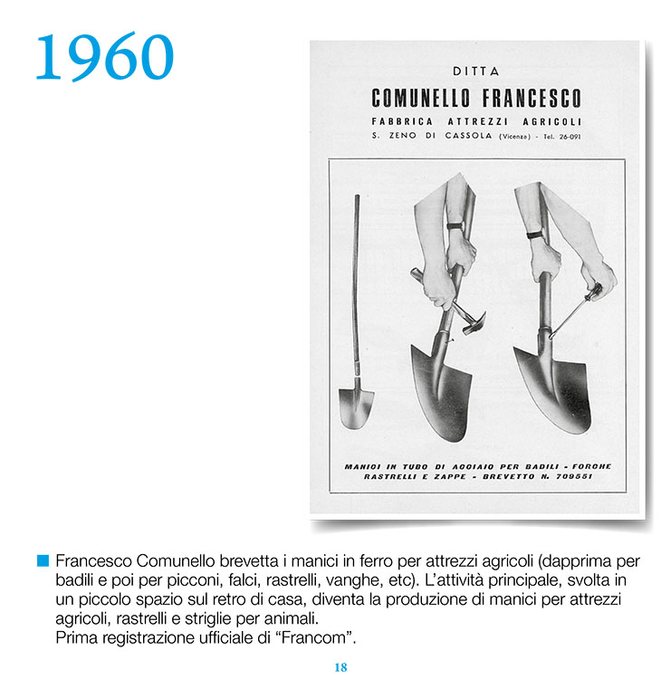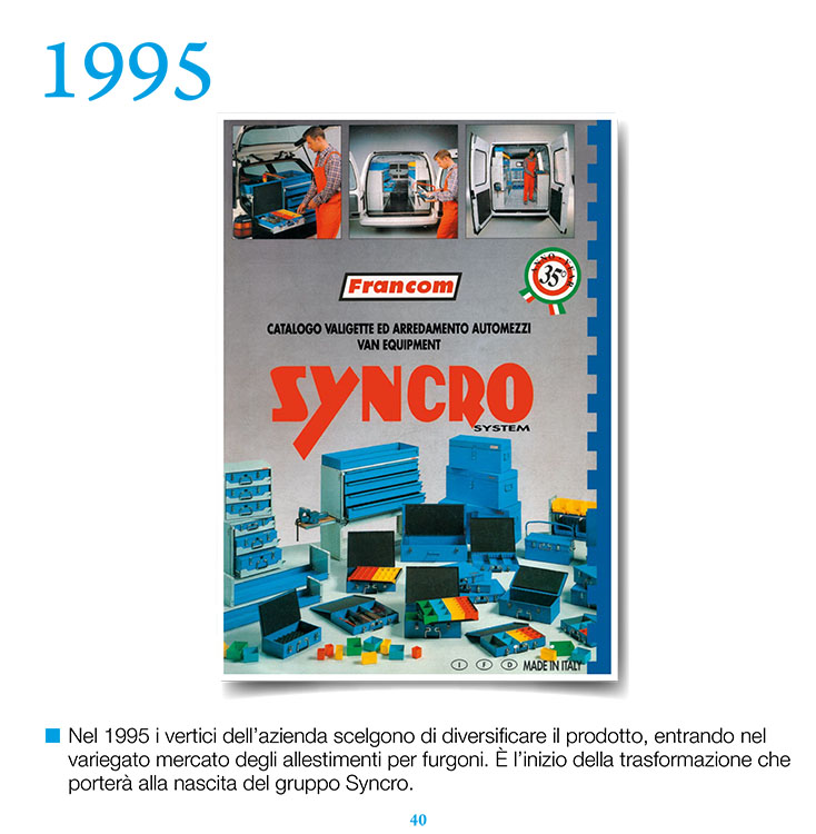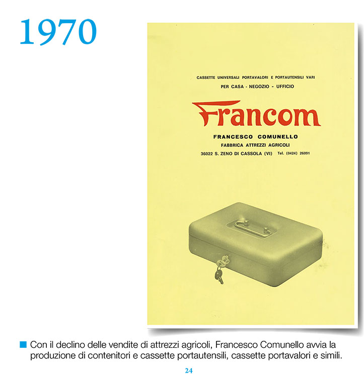 La philosophie du groupe Syncro est étroitement liée au concept d’amélioration continue : c’était déjà ce que soutenait son fondateur, Francesco Comunello, qui enregistra Francom en 1960, le début d’une histoire qui fête aujourd’hui ses premiers 60 ans. De la production d’outils agricoles à la réalisation et installation d’aménagements pour fourgons, le pas n’a été ni bref ni simple, mais la famille Comunello a tenu solidement la barre de l’entreprise. Ensemble, ils ont su tirer profit des transformations du contexte socio-économique, non seulement local mais aussi global, et de l’avancée des innovations technologiques qui ont littéralement sapé les certitudes d’une époque.