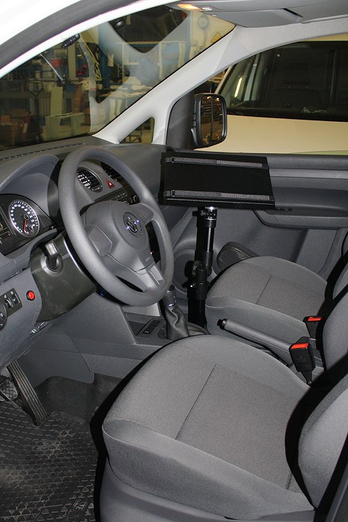 La sécurité avant tout. C’est une des pierres angulaires de la philosophie Syncro System et une des raisons pour lesquelles l’entreprise a conçu et produit des boitiers et des accessoires de fixation destinés à la cabine de conduite. Parmi ces derniers, citons le trépied porte PC en aluminium à fixer sur les supports du siège passager et le filet porte-objets.