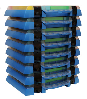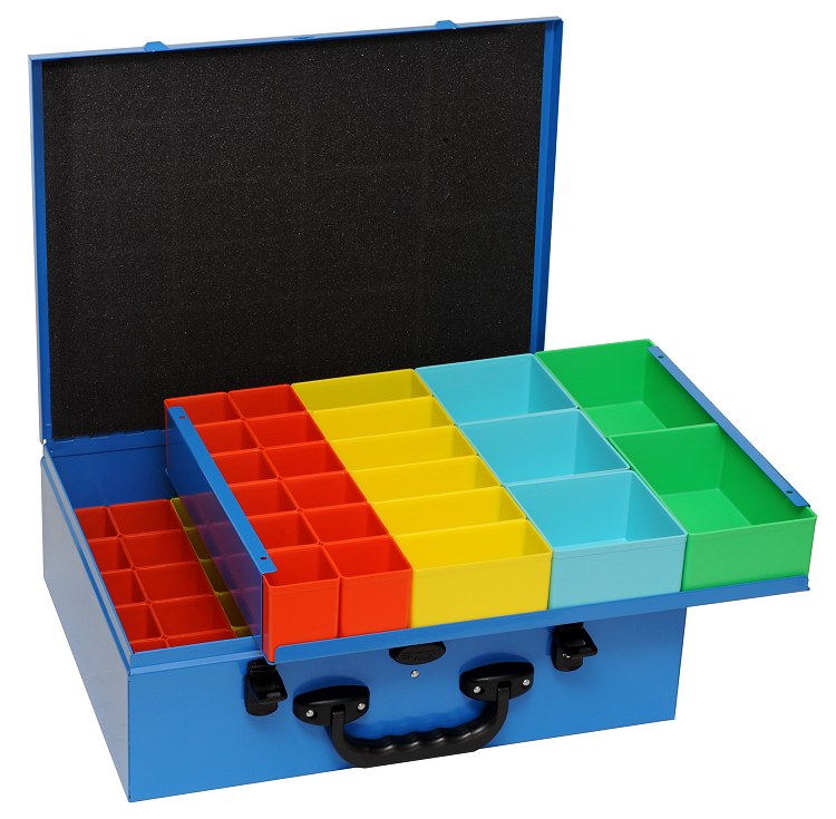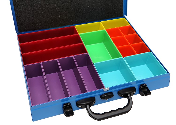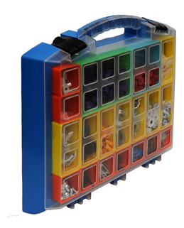 Galaxy est la réponse aux exigences de tous les artisans, petits entrepreneurs, installateurs et constructeurs qui ont besoin d’une valise pratique, légère et efficace pour transporter la visserie, les pièces de rechange et les petits outils. Les mesures sont de 440x66x370 cm, le couvercle est transparent avec un design caractéristique quadrillé en relief (utile pour délimiter visuellement l’espace interne) ; la base de couleur bleue est munie de quatre pieds qui maintiennent la valise en position verticale. Ces pieds facilitent en outre l’empilement en horizontale d’une valise Galaxy sur l’autre, car ils s’encastrent parfaitement dans les parties quadrillées supérieures. Même en position verticale, la stabilité est garantie par deux robustes charnières.