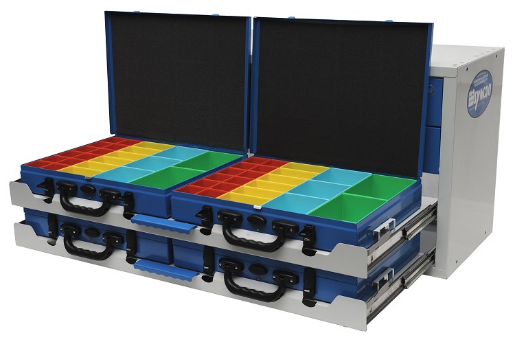 Les valises porte-visserie, fonctionnelles et au design attractif, sont disponibles dans une ample gamme de mesures et de dimensions et peuvent être accessoirisées à l’intérieur selon la demande. La face interne du couvercle est entièrement revêtue de mousse pour caler le contenu et selon les exigences du client, les techniciens Syncro pourront placer à l’intérieur, des compartiments, des séparateurs en plastique ou en métal, des bacs en métal. Comme la plupart des produits Syncro, ces valises construites en aluminium et en acier à très haute résistance sont conçues spécialement pour l’utilisation dans les fourgons, d’où leur robustesse et légèreté exceptionnelles.
